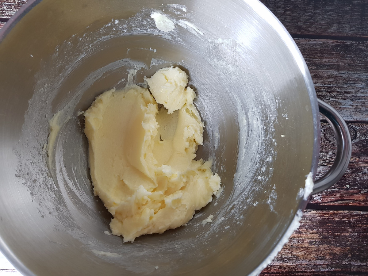 Nella ciotola della planetaria versa lo zucchero, il burro, il sale e il tuorlo e mescola con la foglia a velocità media