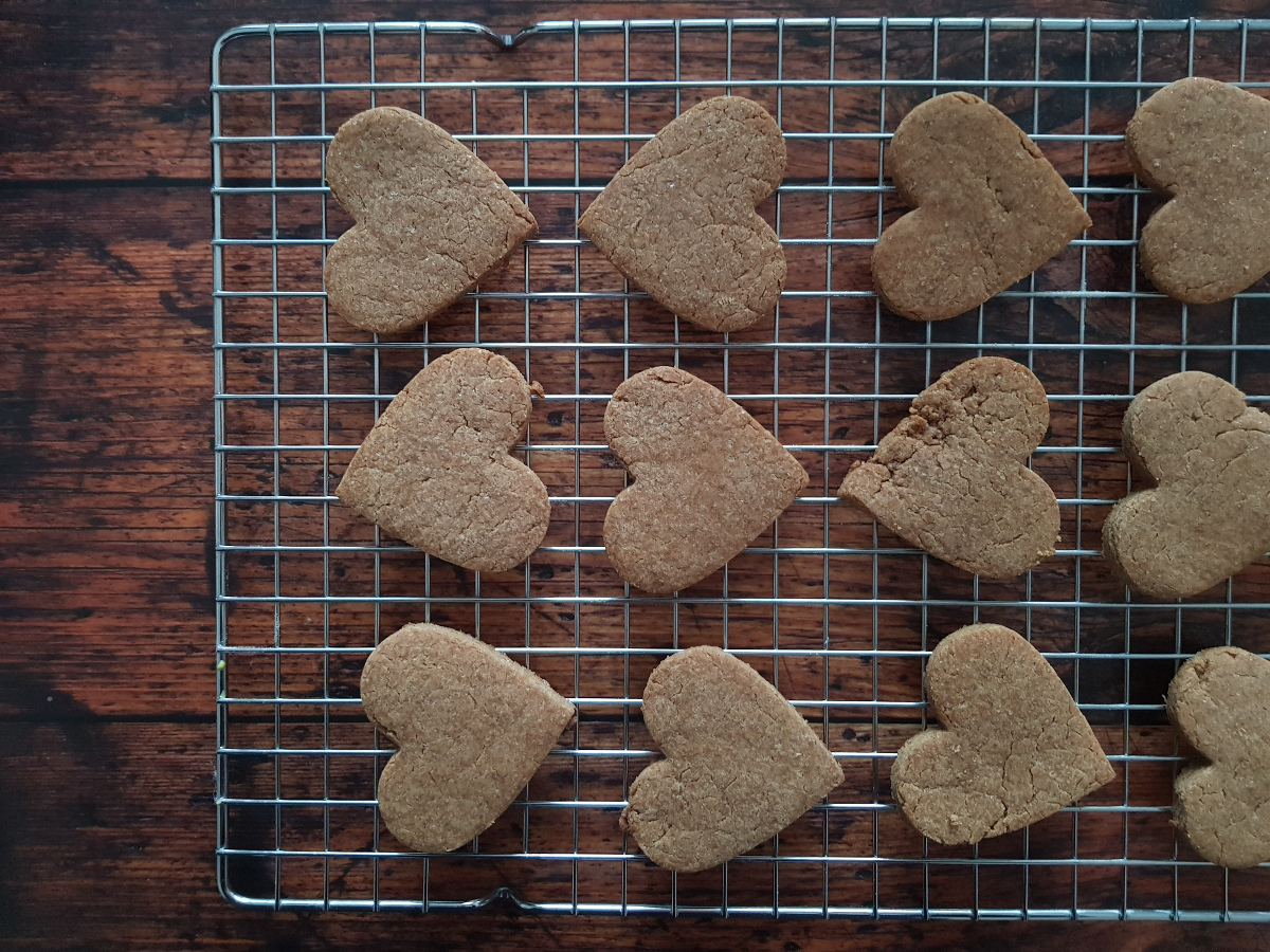 Mi piacerebbe avere ancora qualche biscotto che avevo preparato qualche giorno fa: un cuore di frolla vegana a base di farina di farro e castagne, cotto e pucciato per metà nel cioccolato fondente. È una frolla senza uova né burro, solo con olio di semi di arachidi e zucchero di canna, ma è davvero buonissima!