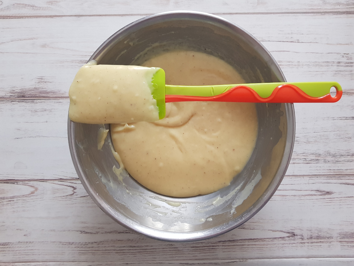 Aggiungi il colorante all’albume e mescola con delicatezza, senza smontarlo. Aggiungi la farina e lo zucchero setacciati e mescola sempre delicatamente.