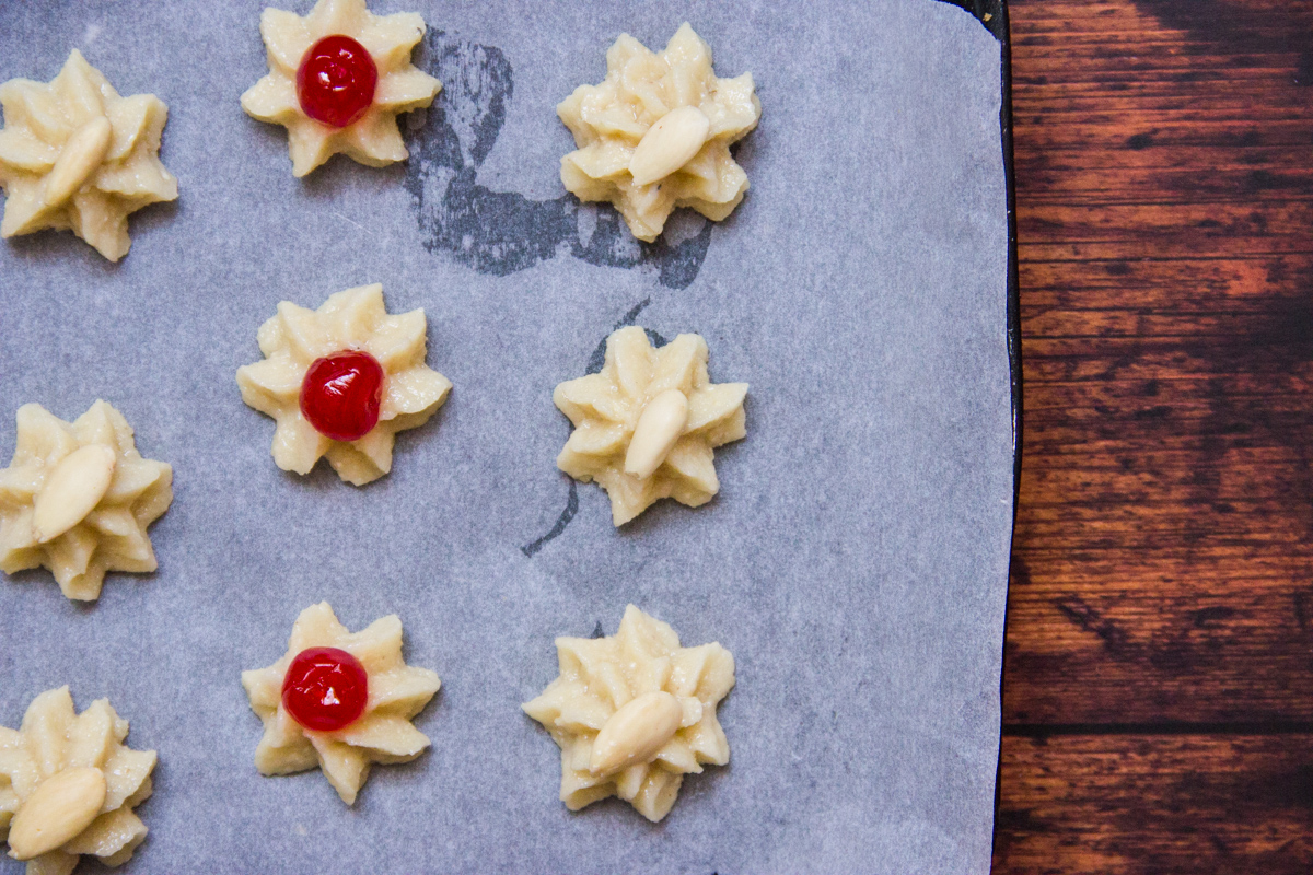 Trasferisci l'impasto in un sac à poche munita di bocchetta a stella e dai la forma ai biscotti su una teglia da forno.