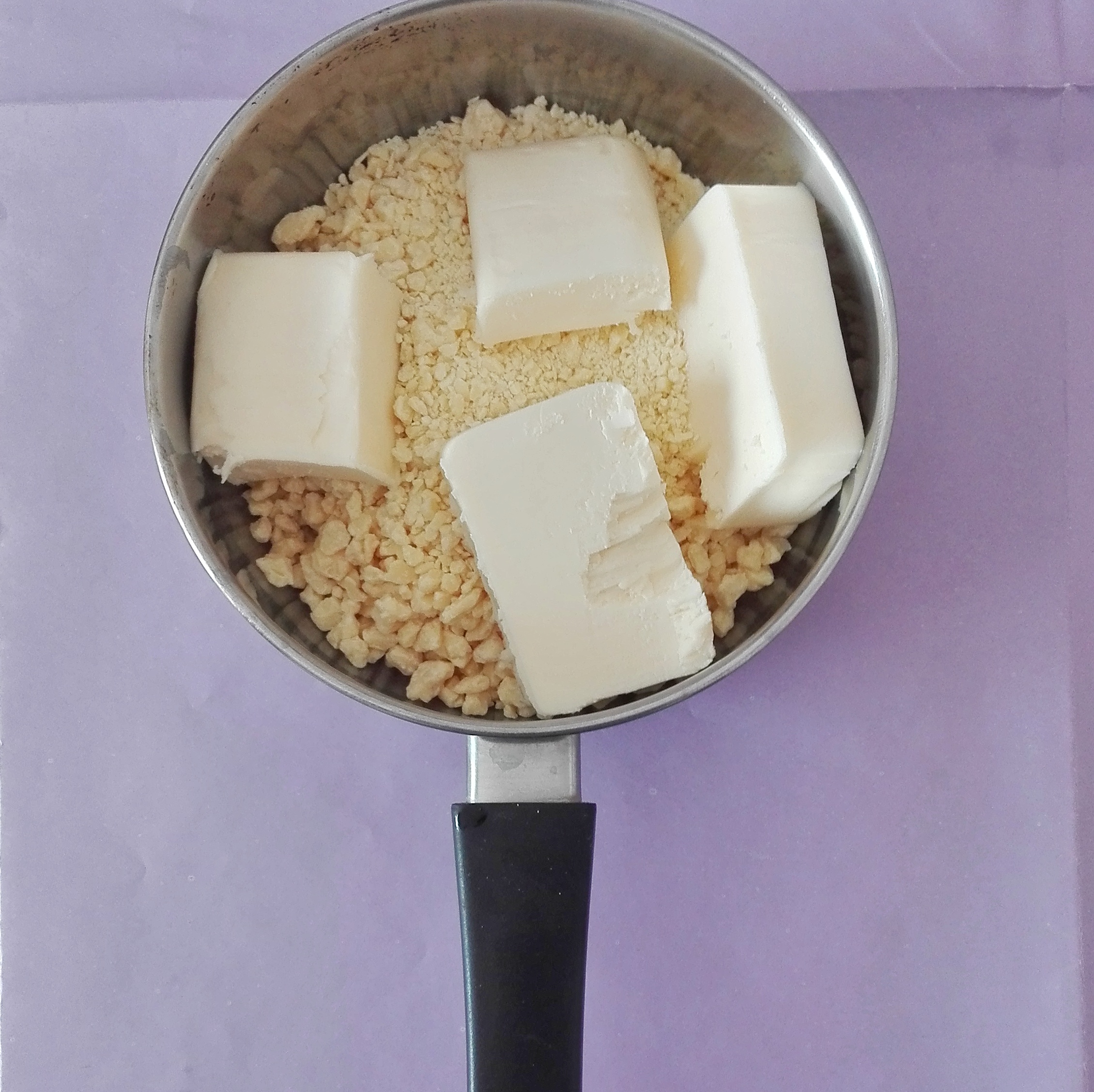 Trita finemente il cioccolato bianco e scioglilo a bagnomaria con il burro a pezzetti.