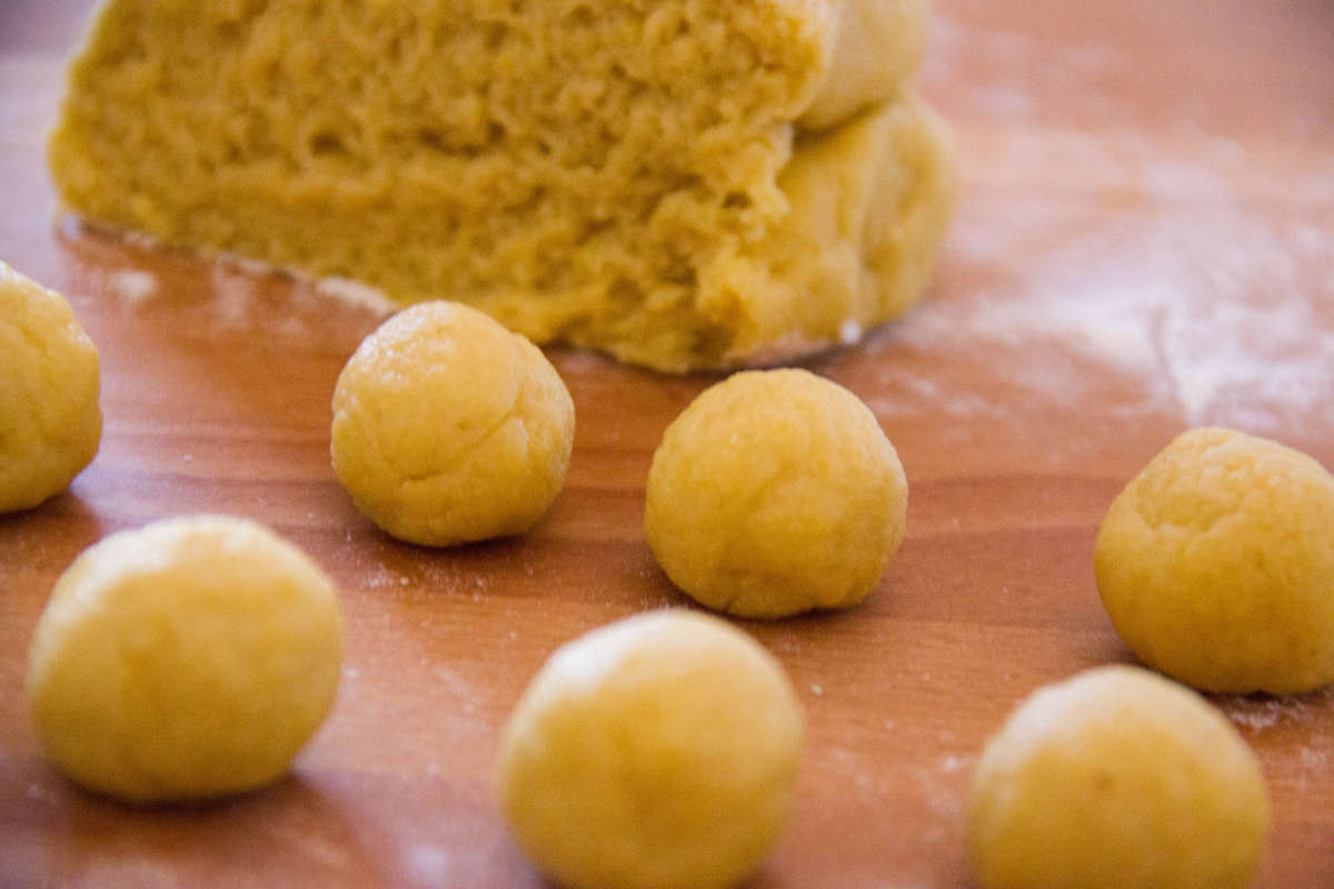 Ottieni delle palline, arrotolando l'impasto con le mani.