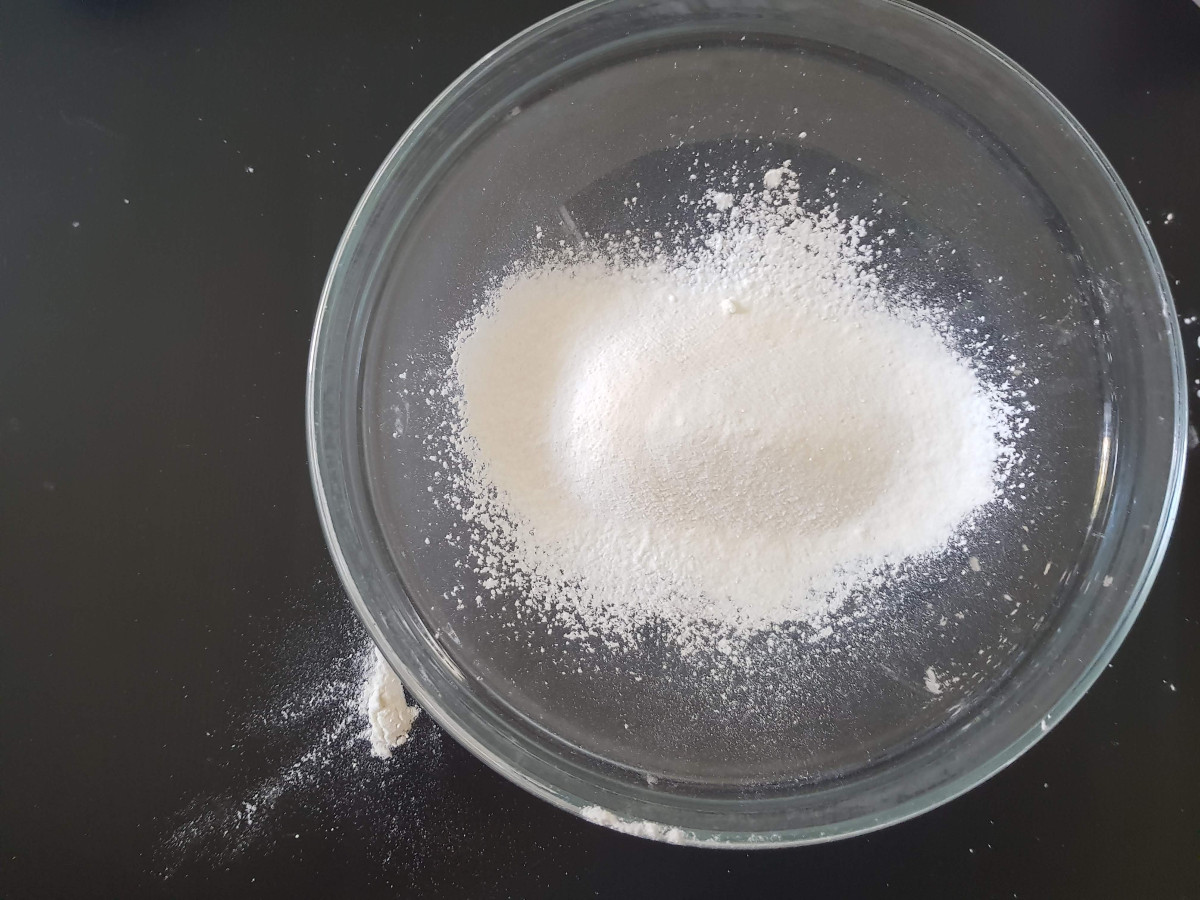 Monta gli albumi con la frusta a velocità media per 2 minuti. Trascorso questo tempo, aggiungi i 50 g di zucchero a velo e il cremor di tartaro e monta fino ad ottenere un composto a neve ferma.