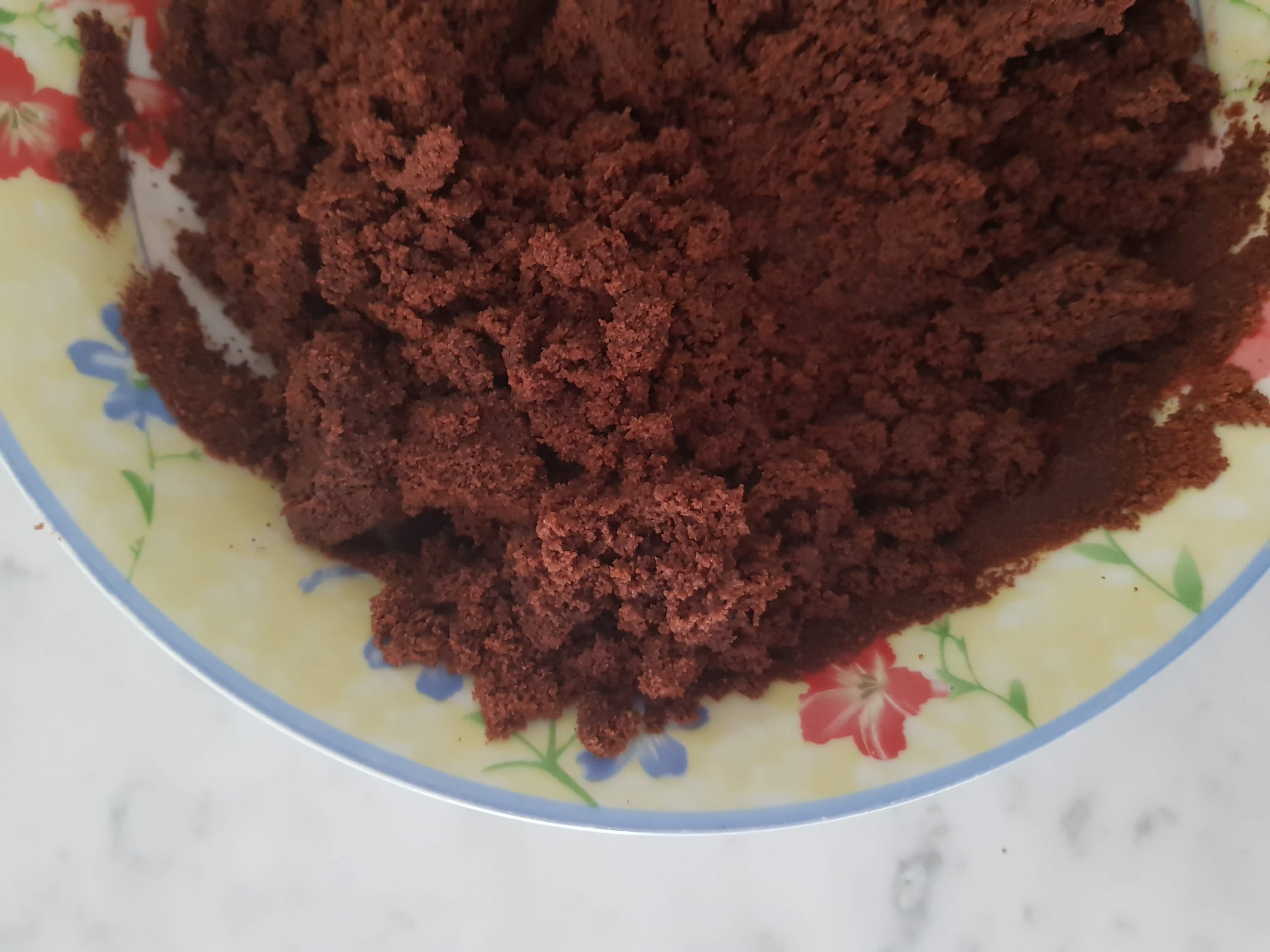 Inserisci i biscotti in un frullatore (o mixer) e frullali finemente fino a ridurli in polvere. Metti la polvere di biscotti al cacao in una ciotola e versa il burro fuso.