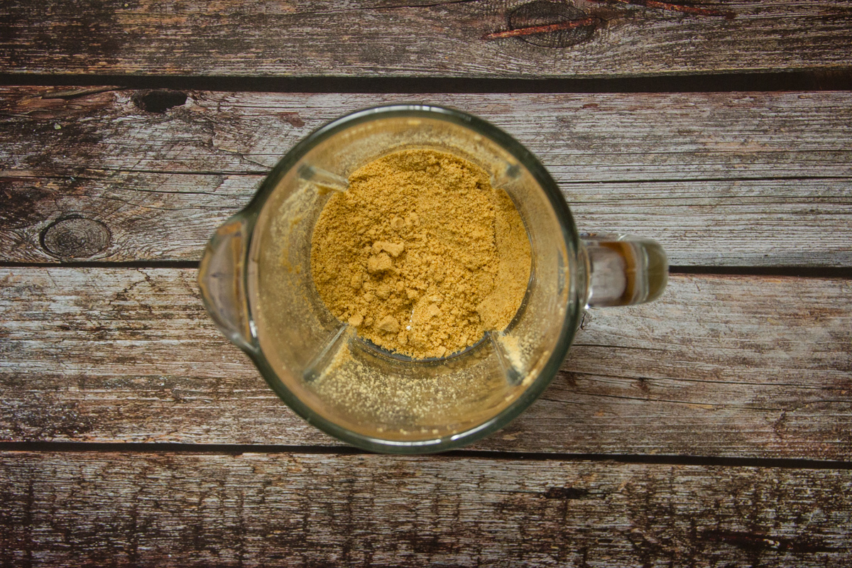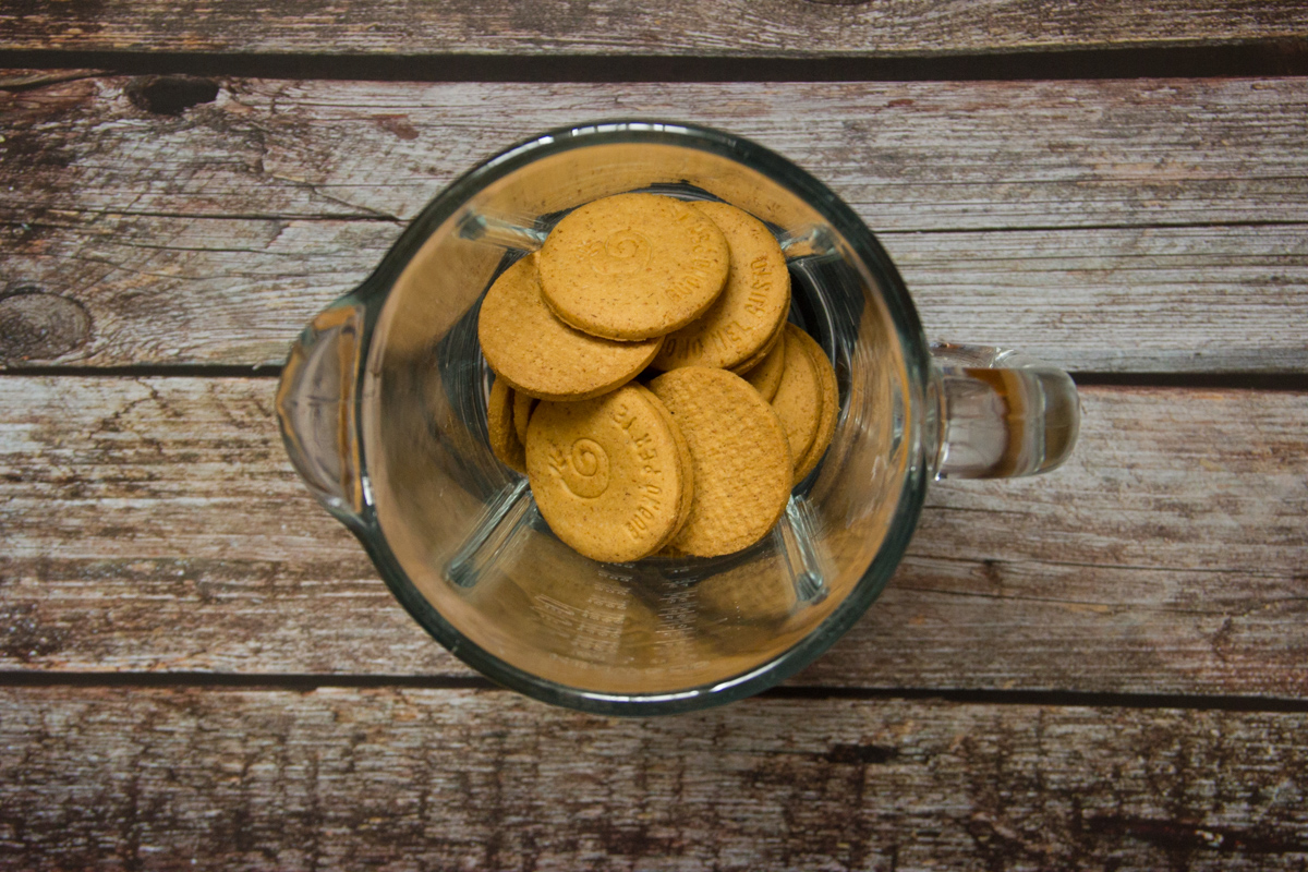 Sbriciola i biscotti in un frullatore: devono raggiungere la consistenza di una farina.