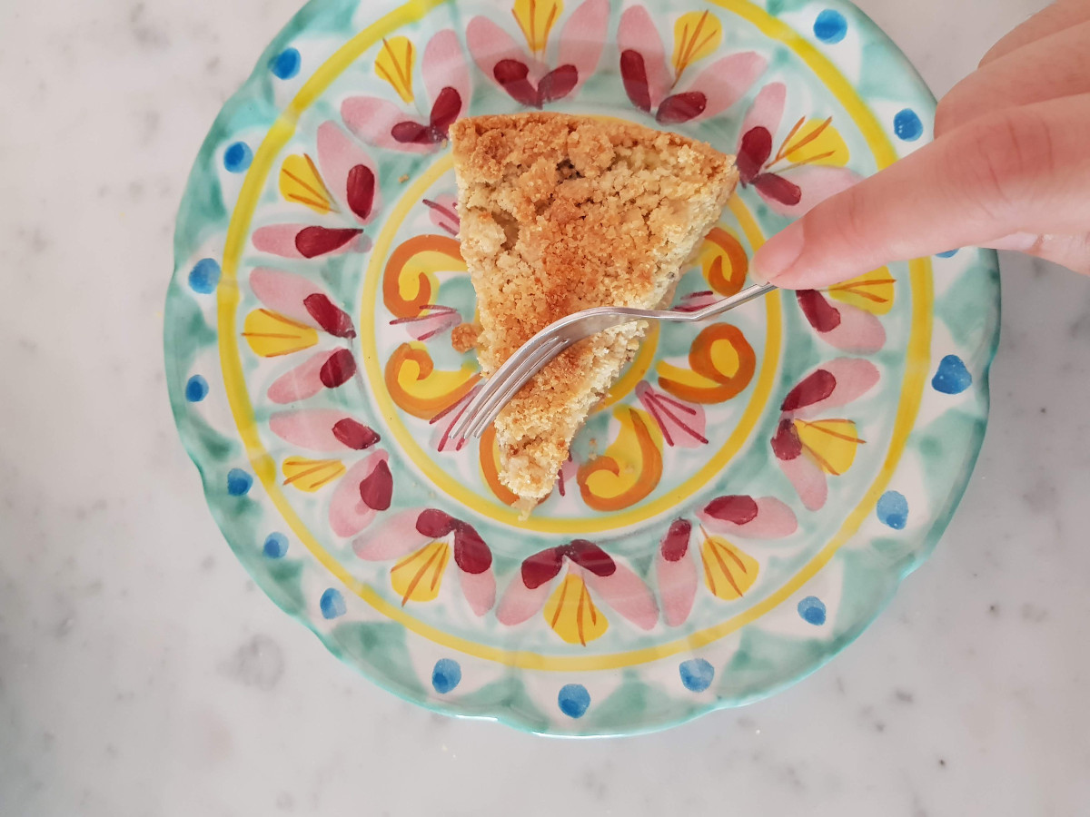 La sbriciolata al pistacchio, ricotta e gocce di cioccolato è un dolce estivo perfetto come dessert domenicale o come merenda.