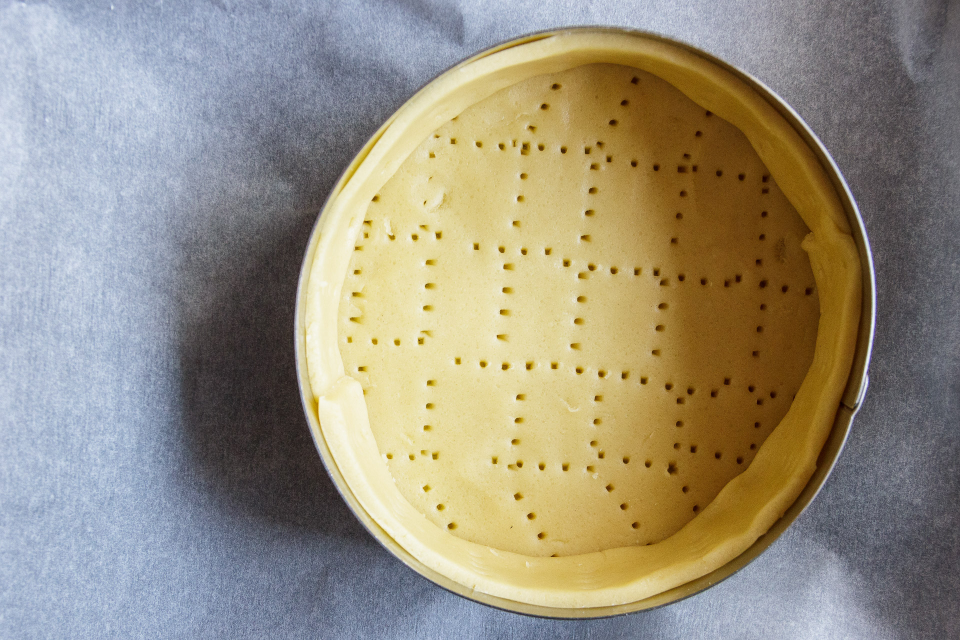 Bucherella il fondo della crostata e cuoci a 180°C per 20 minuti, o fino a doratura.