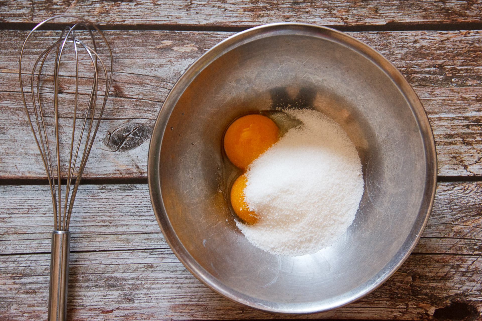 In una ciotola, mescola con una frusta i tuorli con lo zucchero, fino a sciogliere bene lo zucchero.