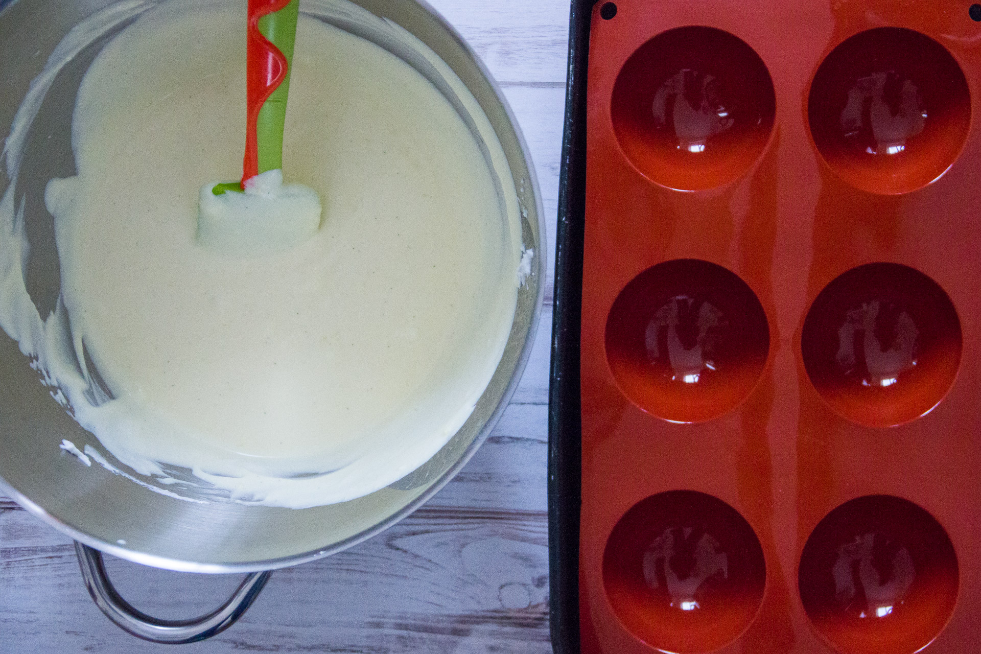Per prima cosa ho comprato lo stampo di silicone con sei semisfere (se non ce l’hai, ti consiglio questo) e uno con le semisfere più piccole (come questo). Poi ho aperto il libro di Leonardo di Carlo e ho scelto le ricette (guidata dal mio fidato amico Stefan, che mi ha consigliato l’abbinamento dei gusti).