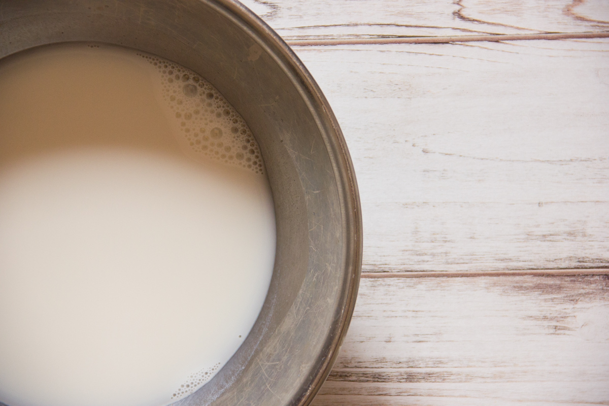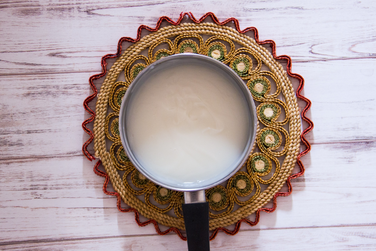 Porta a bollore il latte di mandorle con lo zucchero.