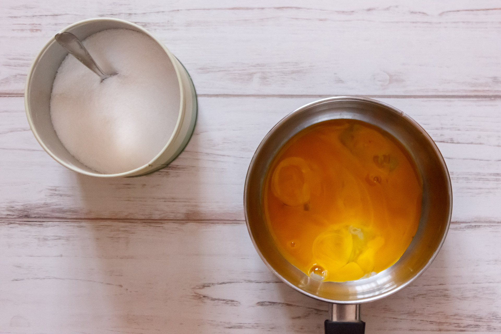 In una ciotola mescola i tuorli con lo zucchero semolato con un frullino o in planetaria munita di frusta.