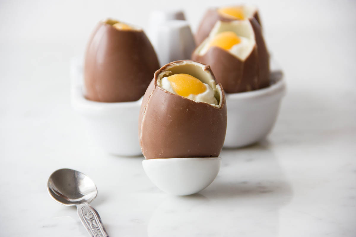 Una cheesecake alternativa, racchiusa in un ovetto di cioccolato da servire come dessert a Pasqua o in altre occasioni.