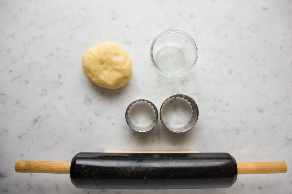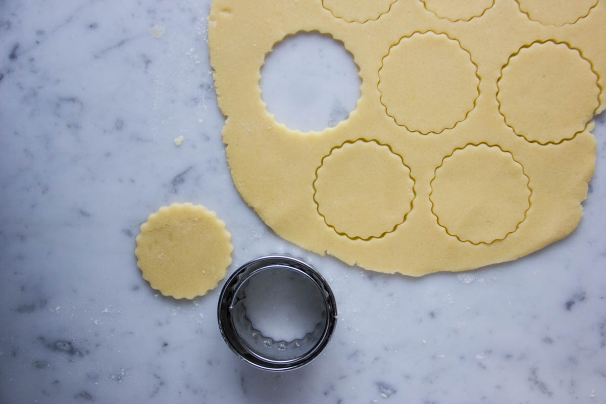 Stendi la pasta frolla molto sottile (circa mezzo centimentro) e ricava sei dischi di pasta frolla dello stesso diametro dei barattoli.