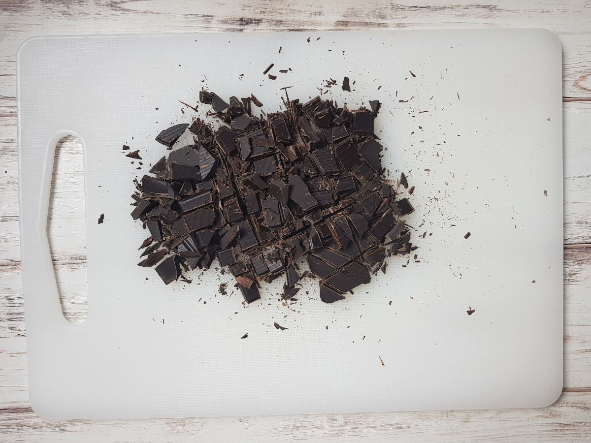 Taglia il cioccolato fondente a pezzettini.