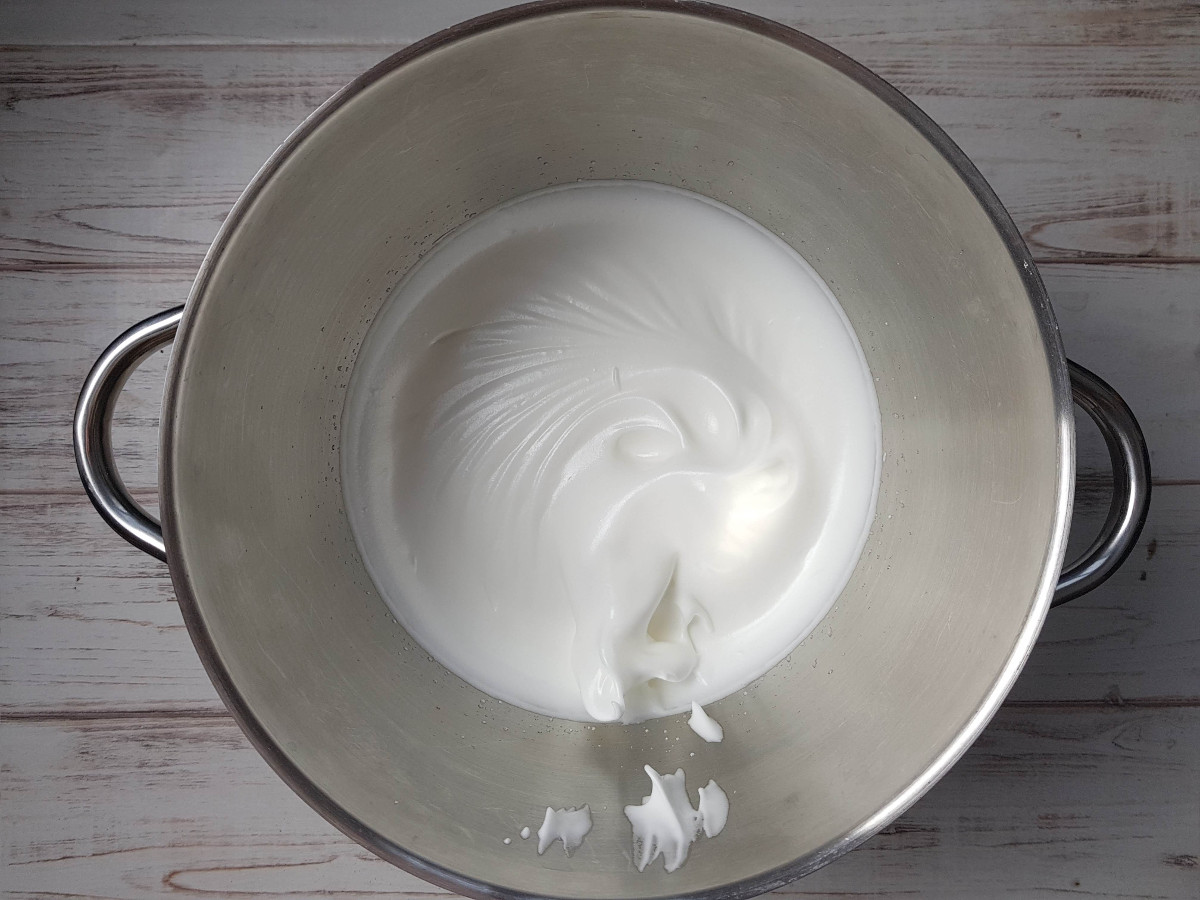 Monta gli albumi a neve con lo zucchero semolato. Devi ottenere una meringa fermissima.