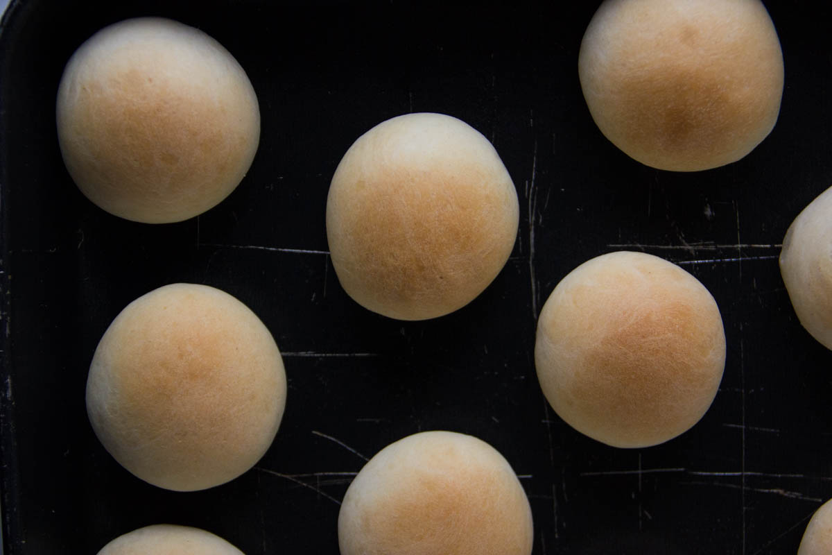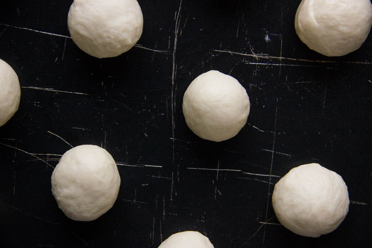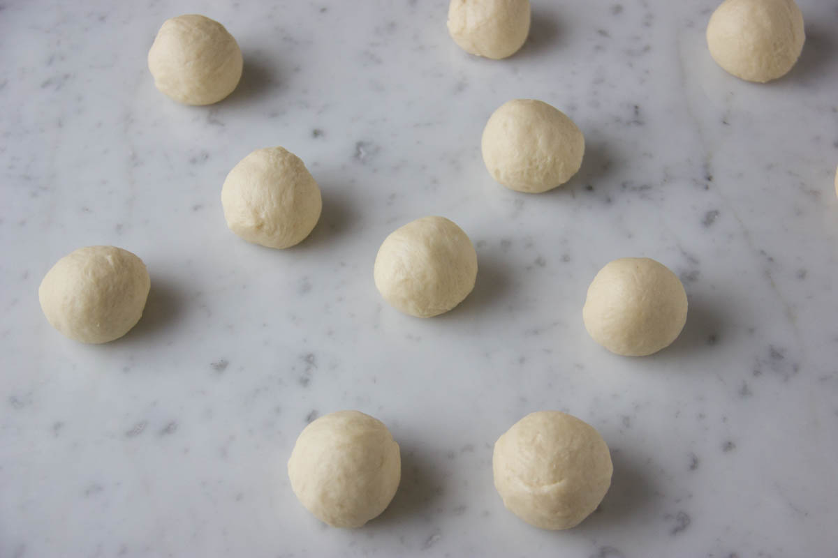 Dopo che l'impasto è raddoppiato, sgonfialo e ottieni 20 palline da 20 g ciascuna e lascia lievitare fino al raddoppio.