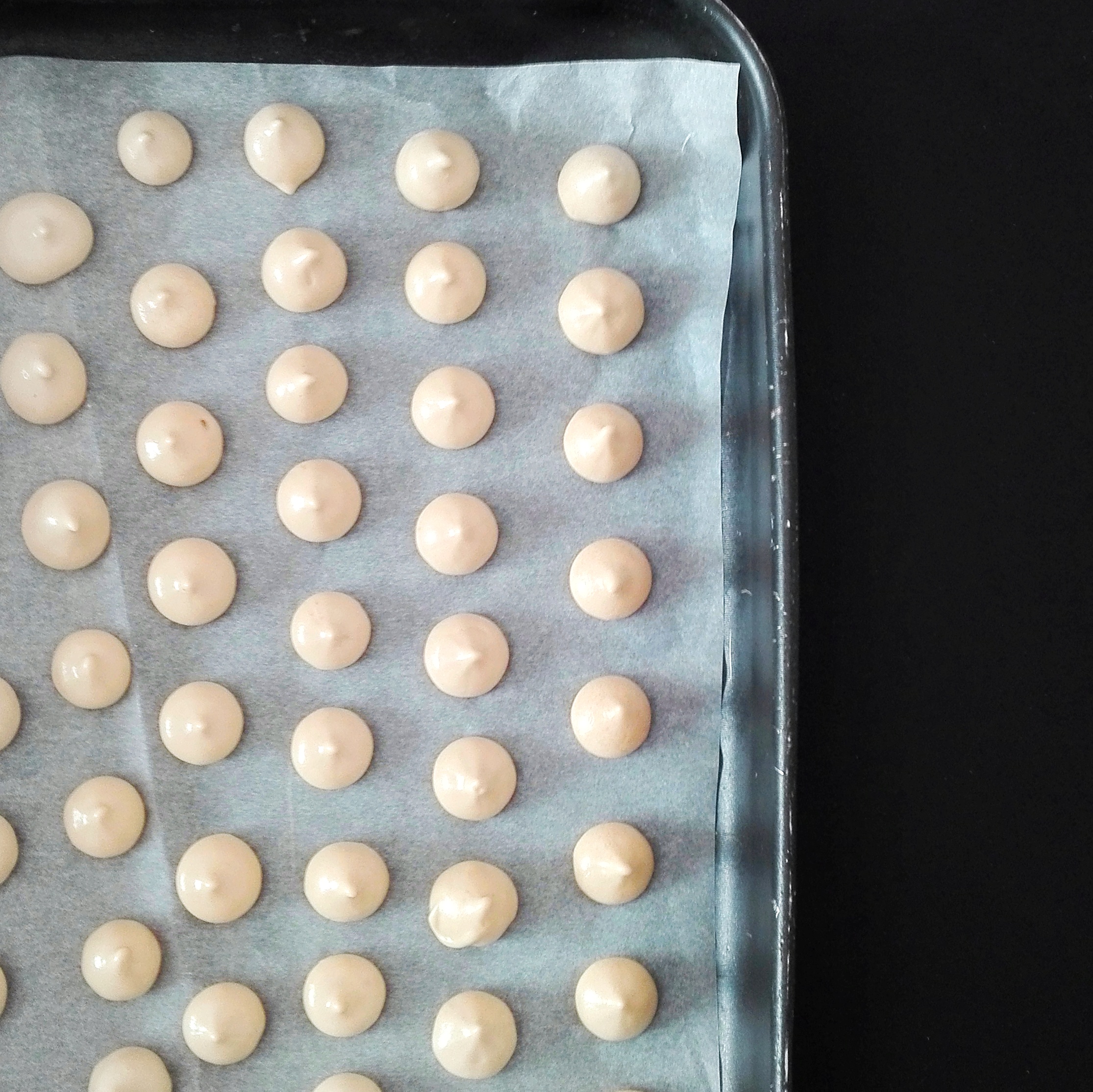 Trasferisci la meringa in un sac à poche e dai la forma che preferisci su una teglia foderata con carta da forno.