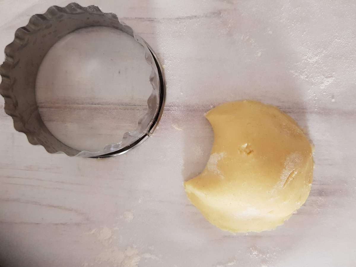 Stendile, inserisci uno spuntone di crema al centro della frolla e ripiegala.
