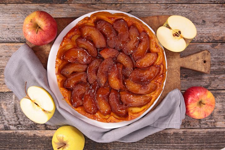 La tarte Tatin è la più famosa torta alle mele del mondo. Di origine francese, a base di pasta brisée e mele caramellate, come la maggior parte delle cose buone è nata da un errore: un giorno una delle due sorelle Tatin, che gestivano insieme un ristorante a Lamotte – Beuvron, infornò una torta di mele ma, nella fretta, dimenticò il disco di pasta brisée. Quando se ne rese conto, le mele erano già caramellate con zucchero e burro ma inserì ugualmente il disco di brisée e proseguì con la cottura. Una volta pronta, rovesciò la torta su un piano da portata dando vita ad una delle torte di mele più buone e famose al mondo.