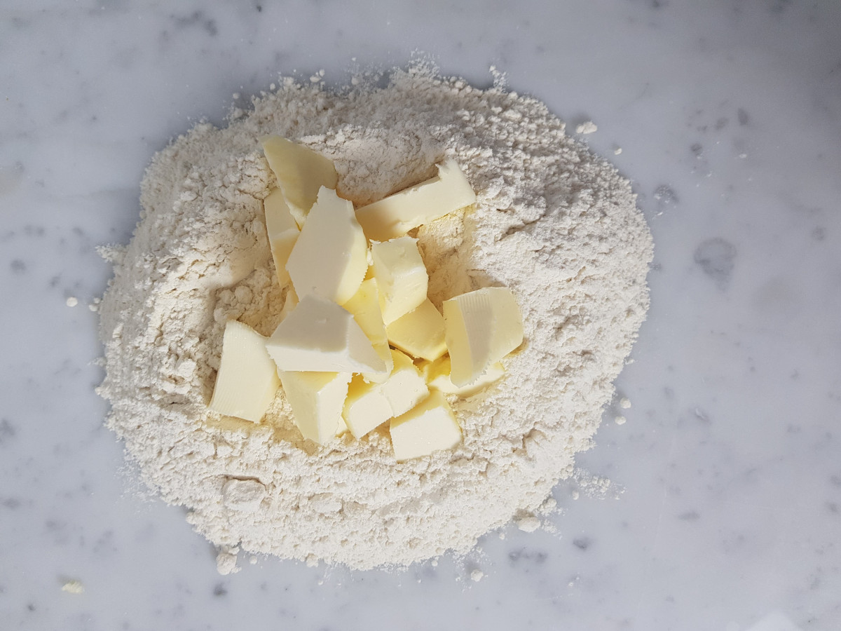 Nella ciotola della planetaria impasta il burro con la farina con la foglia K, aggiungendo l'acqua a filo.