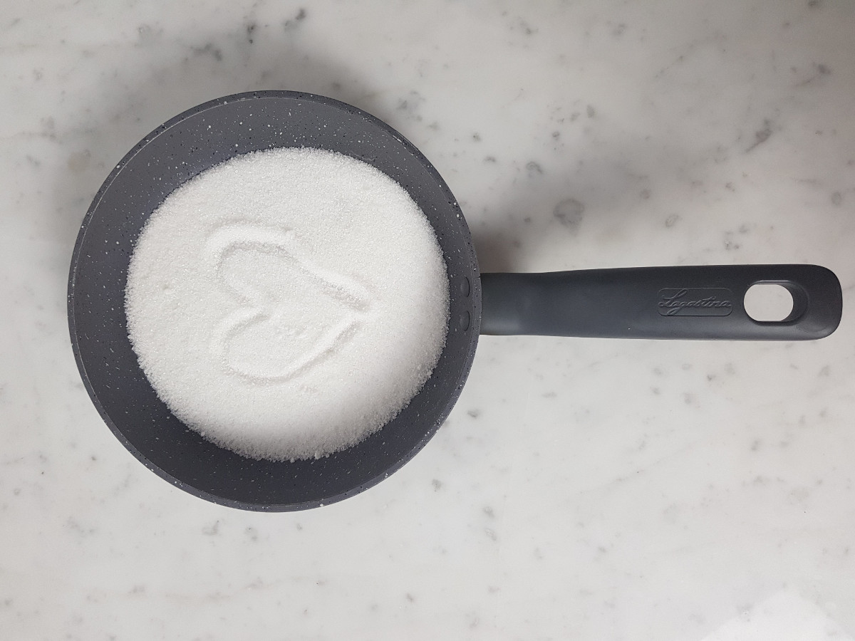 Versa lo zucchero in una padella e lascia fondere lo zucchero fino a doratura a fuoco basso. Non mescolarlo.