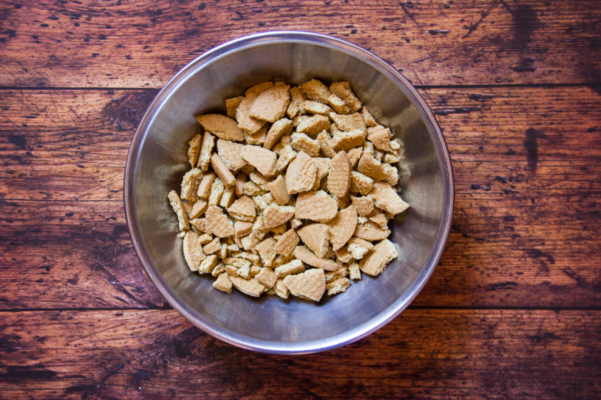 Pesa 75 g di biscotti e frullali mentre l'altra metà tritala grossolanamente.