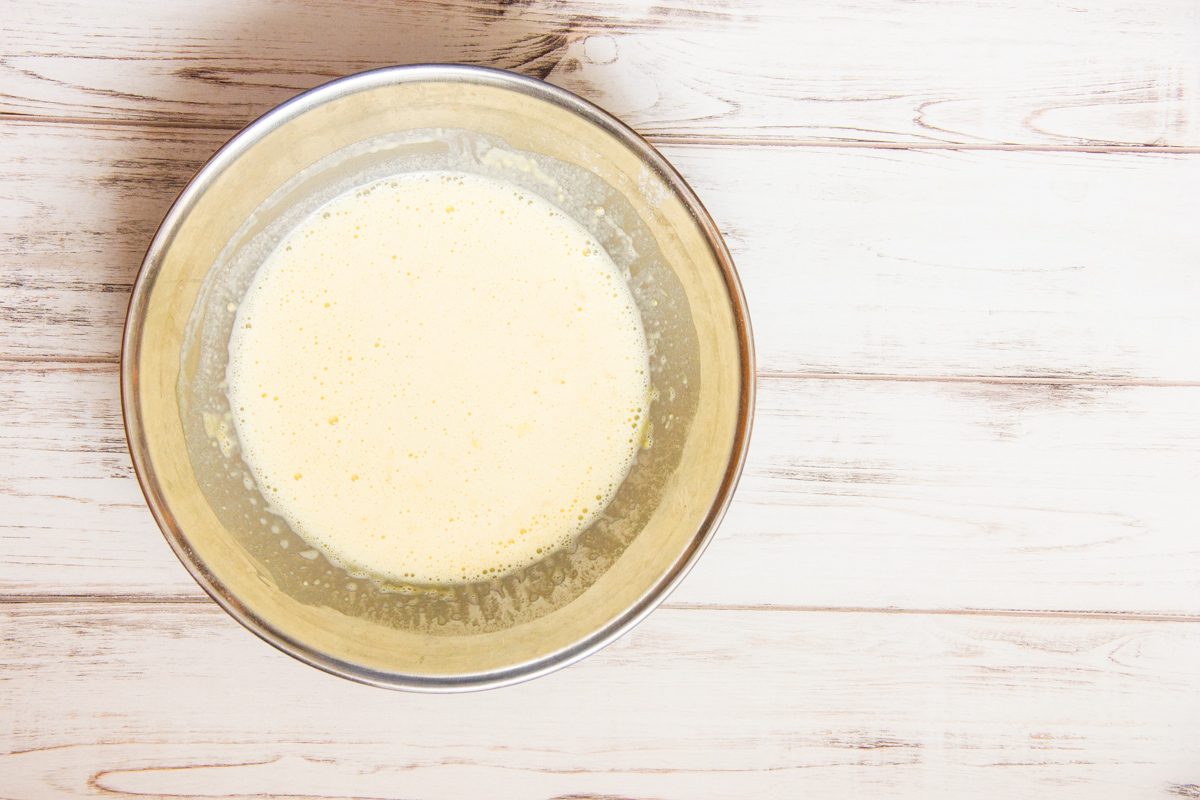 Aggiungi il latte a filo e mescola fino ad ottenere una pastella.