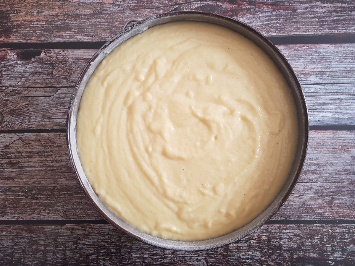 Imburra e infarina una tortiera di 24 cm di diametro e versa il composto.