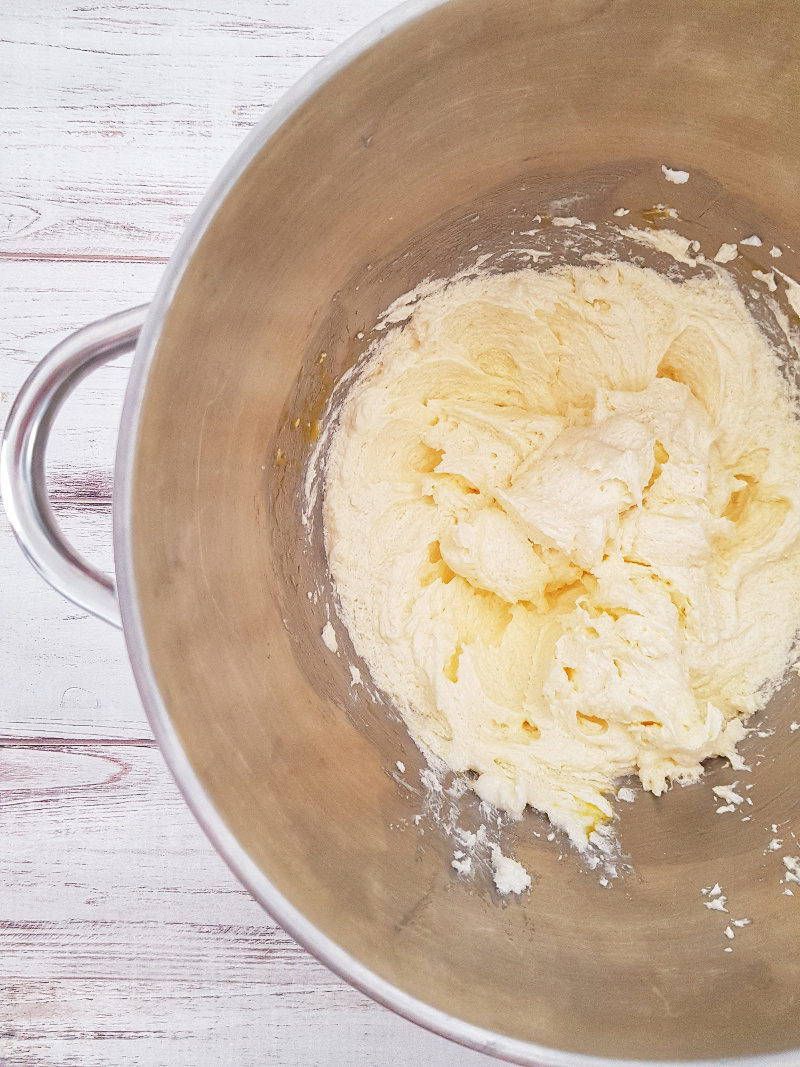 Metti il burro morbido in una ciotola, aggiungi lo zucchero a velo e la vaniglia e inizia a montare con le fruste elettriche a velocità media per 5 minuti.