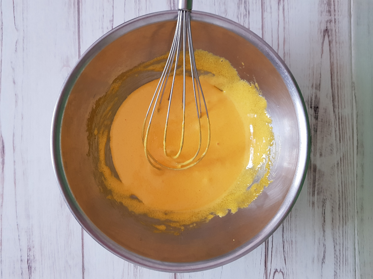 Quando gli albumi sono montati a neve ferma, monta i tuorli con lo zucchero fino a quando il composto diventa chiaro e spumoso.